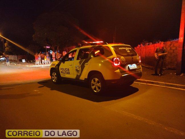 Segundo informações colhidas no local, dois indivíduos teriam efetuado vários disparos contra um homem, ele foi alvejado em uma das mãos e no abdômen. Em seguida os autores se evadiram do local em dois veículos, um Fiat Stilo preto e uma GM Meriva prata, seguindo sentido a Entre Rios do Oeste.