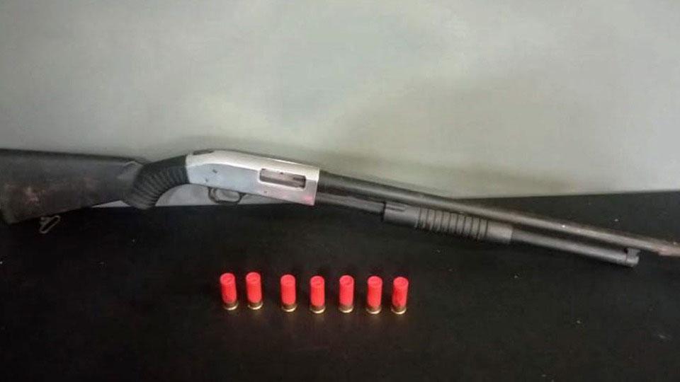 Os policiais também encontraram a espingarda calibre 12 usada pelo suspeito para praticar o crime. A arma de fogo estava em área de mata.
