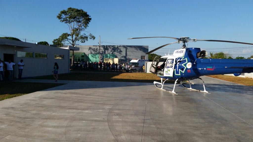 O pronto atendimento de Terra Roxa, construído recentemente, recebeu hoje pela primeira vez o helicóptero do Consamu.
