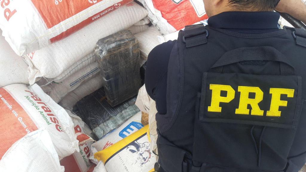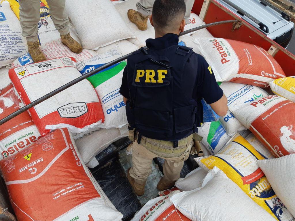 Durante a abordagem, o motorista, de 45 anos de idade, apresentou documentos com indícios de falsificação. Ao vistoriar o semirreboque, os policiais rodoviários federais acabaram por encontrar diversos fardos de maconha, escondidos sob a carga de milho.