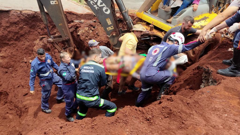 Trabalhadores que estavam no local retiraram a terra de cima da vítima. Equipes do SAMU e da Brigada Comunitária foram acionadas e resgataram o homem.
