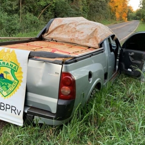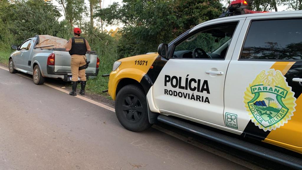 Em torno das 17h15 deste domingo, quando em patrulhamento pela rodovia estadual PR-317 km 417, área rural do município de Ouro Verde do Oeste, os policiais rodoviários tentaram abordar um veículo GM/ Montana, cor prata, todavia, o condutor não acatou a ordem de parada e evadiu-se em alta velocidade, abandonando a caminhonete logo em seguida próximo a um matagal, aonde fugiu e mesmo após ser feito buscas não foi localizado.