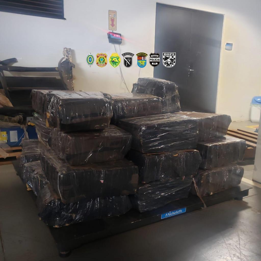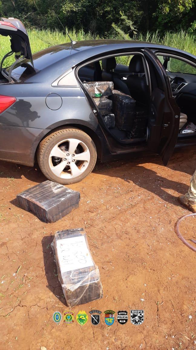 Foram apreendidos, um veículo cruze sedan com placas adulteradas e alerta de roubo ocorrido em Curitiba em 14/08/2020; uma embarcação artesanal de fibra, equipada com motor YAMAHA 200hp e aproximadamente 570kg de substância análoga à maconha.