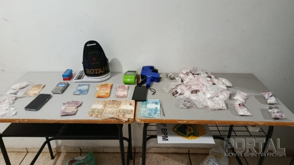 Uma ação realizada na noite de sexta-feira (02) resultou na apreensão de grande quantidade de entorpecentes, dinheiro, veículos e equipamentos utilizados em um esquema de distribuição de drogas em Toledo, no bairro Jardim Panorama II.