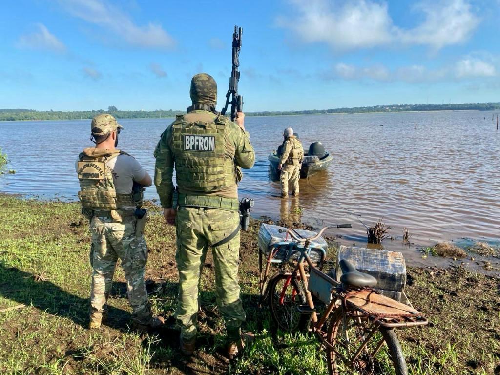 Na terça-feira (19), policiais militares do Batalhão de Polícia de Fronteira, em ação integrada com policiais federais durante patrulhamento nas margens do rio Paraná em Guaíra, localizaram nove volumes de maconha que após pesagem totalizaram 182 kg. A droga estava sendo carregada em uma bicicleta cargueirra como é conhecida.