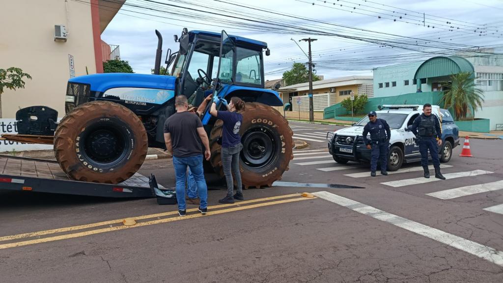 Um trator da marca New Holland, avaliado em aproximadamente R$ 250 mil, foi recuperado na manhã desta quarta-feira (05) após ter sido furtado na noite anterior, por volta das 22h, em uma fazenda no município de Ouro Verde do Oeste.