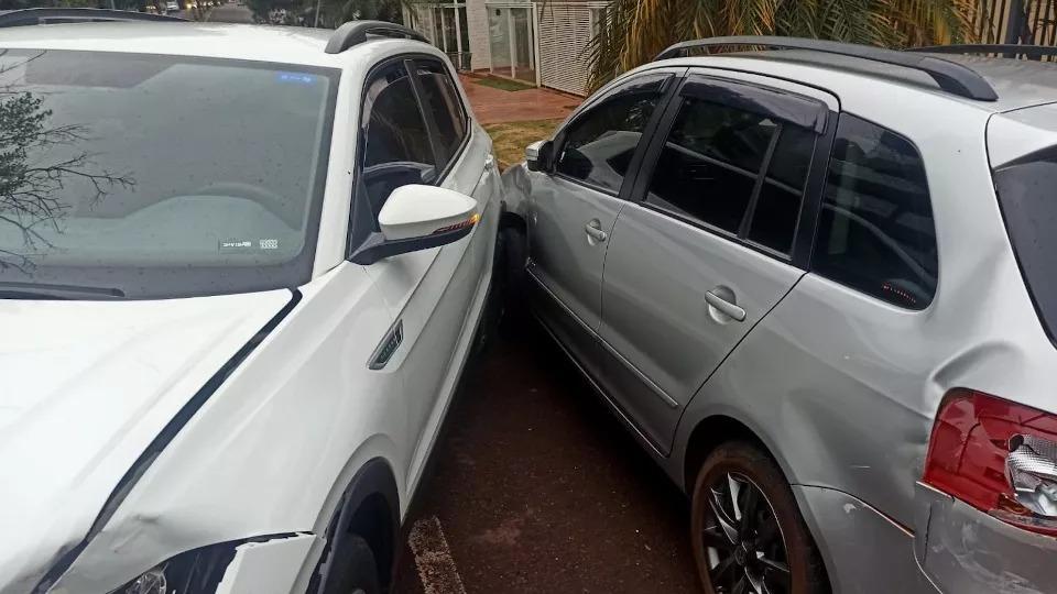 Com o impacto, o T-Cross rodou na pista e atingiu o Volkswagen SpaceFox, que estava estacionado.
