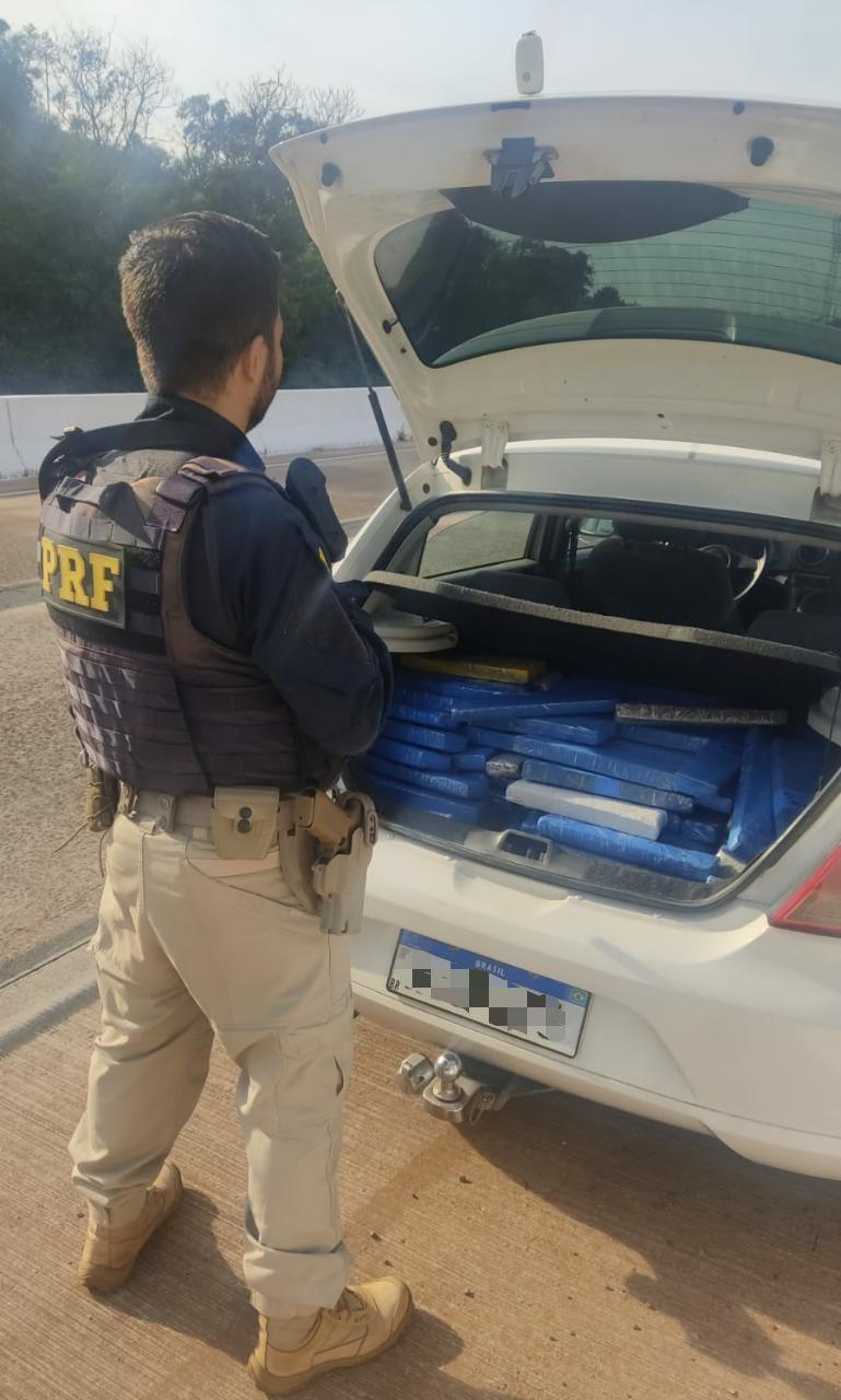 No porta malas do Gol foi localizado 138 quilos de maconha e o outro veículo fazia o serviço de batedor da carga.