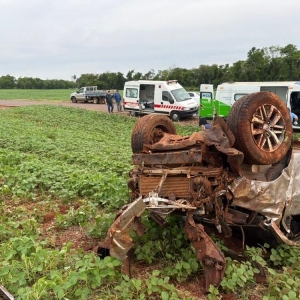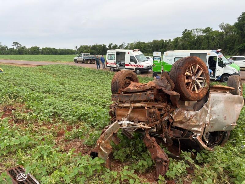 A caminhonete Toyota Hilux seguia pela estrada sentido ao distrito de Arroio Guaçu, quando na curva do aterro, capotou por diversas vezes.