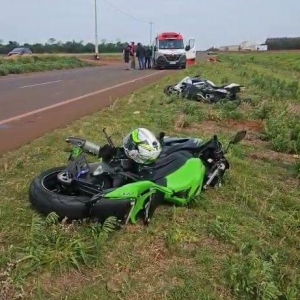 Um grave acidente envolvendo três motocicletas foi registrado por volta das 15h40 deste sábado (25) na BR-163, entre Toledo e Marechal Cândido Rondon, nas imediações do Posto Horizonte Azul.