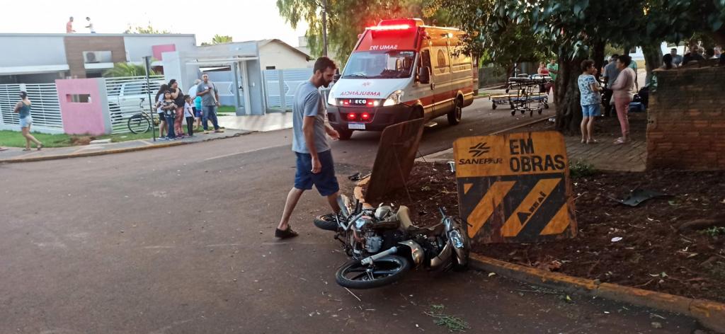 O acidente aconteceu quando condutor da moto CG 150 cilindradas trafegava pela rua Reinaldo Barilli e a moto conduzida por uma moça de 30 anos seguia pela rua Otávio Scremim e no cruzamento das vias aconteceu a batida.
