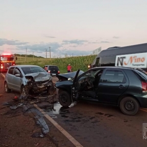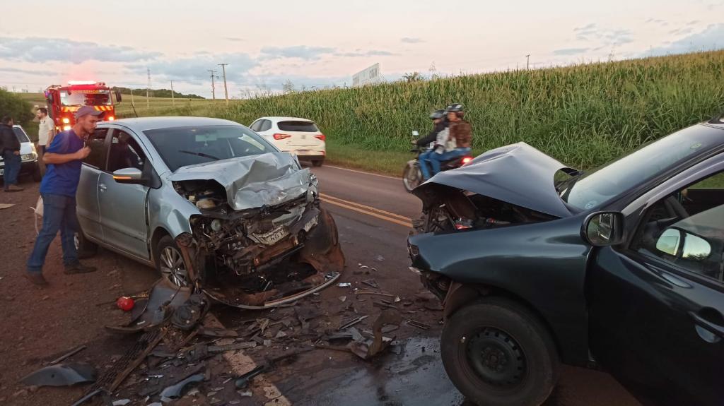 O Fiat Palio com placas de Toledo que era conduzido por uma mulher e um veículo Volkswagen Fox de Ouro Verde do Oeste por um condutor não identificado até o momento.