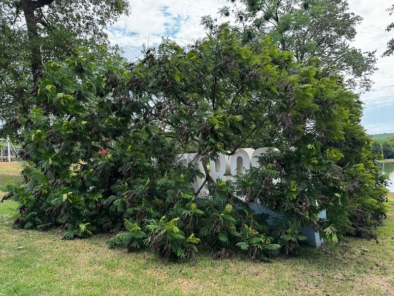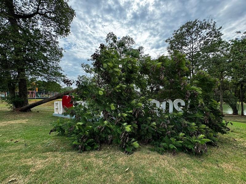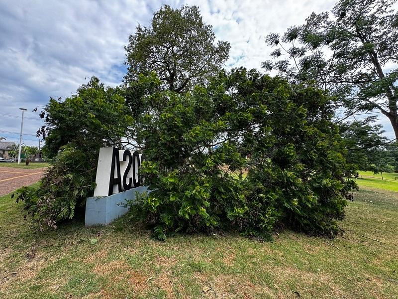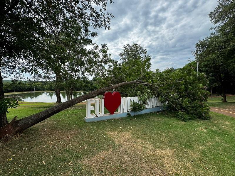 O troco de uma árvore caiu sobre o letreiro “Eu Amo Nova Santa Rosa” que está junto ao Lago Municipal, possivelmente uma rajada de vento pode ter derrubado o tronco entre quarta e quinta-feira.