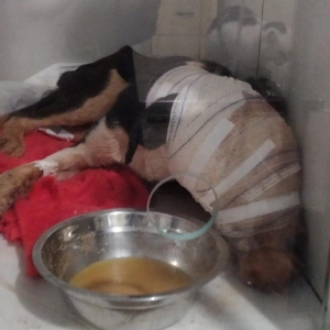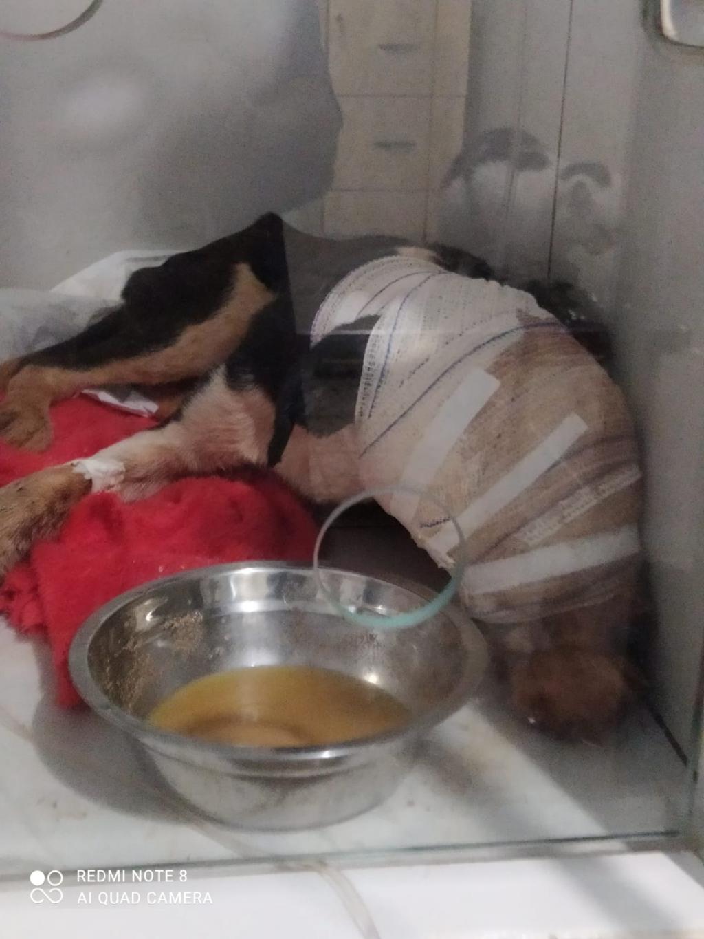 O animal foi recolhido e está em tratamento na Clínica Veterinária Quatro Patas da cidade.