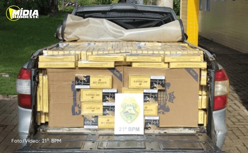 O condutor abandonou a caminhonete ainda em movimento e fugiu a pé, não sendo localizado devido à escuridão e à mata densa no local. Dentro do veículo, os policiais encontraram uma grande quantidade de maços de cigarros contrabandeados. Após consultas ao sistema SESP Intranet, foi constatado que as placas eram clonadas. A numeração do motor revelou que as placas originais eram do município de Maripá, com alerta de furto desde o dia 4 de abril de 2024.