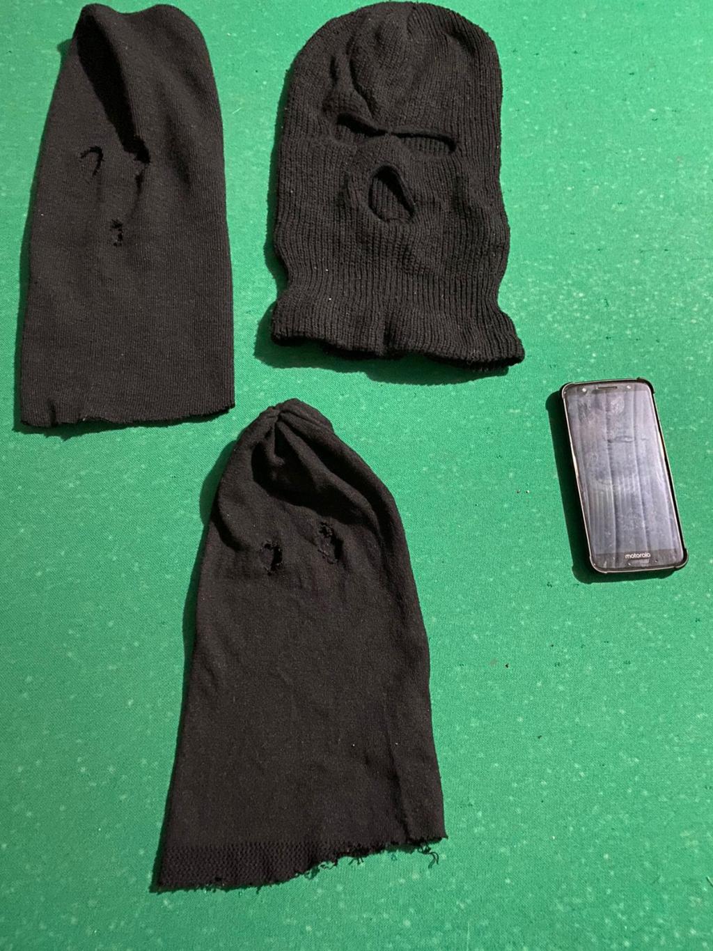 Foram apreendidos um celular e três balaclavas, que geralmente são usados para cometer roubos e assaltos na região.