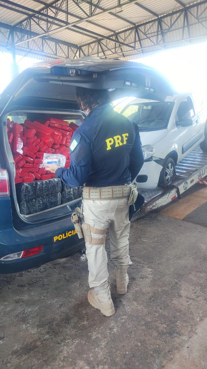 A PRF apreendeu mais de 300 Kg de maconha na Ponte Ayrton Senna em Guaíra, foi dada ordem de parada ao Fiat Uno Vivace 1.0, cor branca e placa de Pinhais no Paraná.