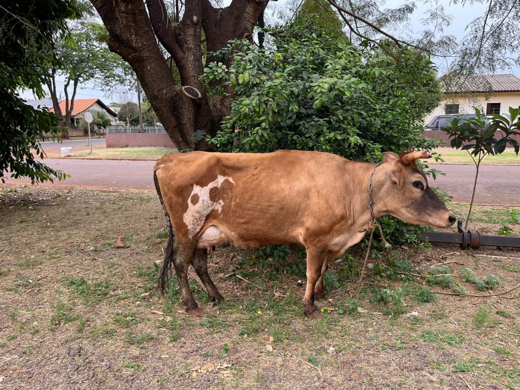 Após a publicação desta matéria, por volta das 14h30, o dono buscou a vaca no local informado.