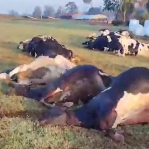Um trágico incidente foi registrado ainda na noite da segunda-feira (07), em uma propriedade localizada na Linha Flor de Maio, distrito de Iguiporã, no interior de Marechal Cândido Rondon. Um curto-circuito em um sistema elétrico resultou na morte de 32 vacas, que acabaram sendo eletrocutadas (veja o vídeo acima).