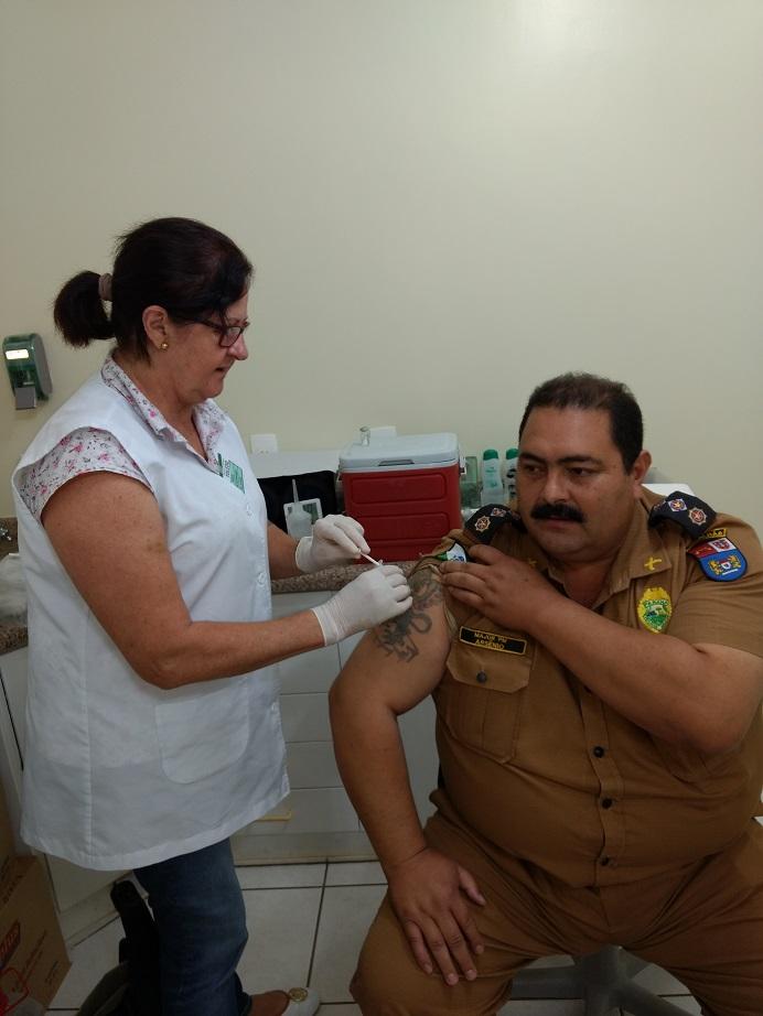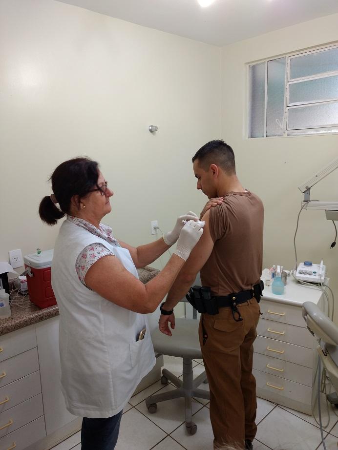Na manhã desta sexta-feira (04), integrantes da Secretaria Municipal de Saúde, da cidade de Toledo, Jardim Porto Alegre, realizaram a campanha de vacinação contra a gripe, para todo o efetivo lotado na cidade de Toledo. Muitos Policiais Militares participaram da vacinação, tudo isso, em virtude do contato direto com a população, pessoas presas, grandes aglomerações, como, jogos de futebol, eventos municipais.