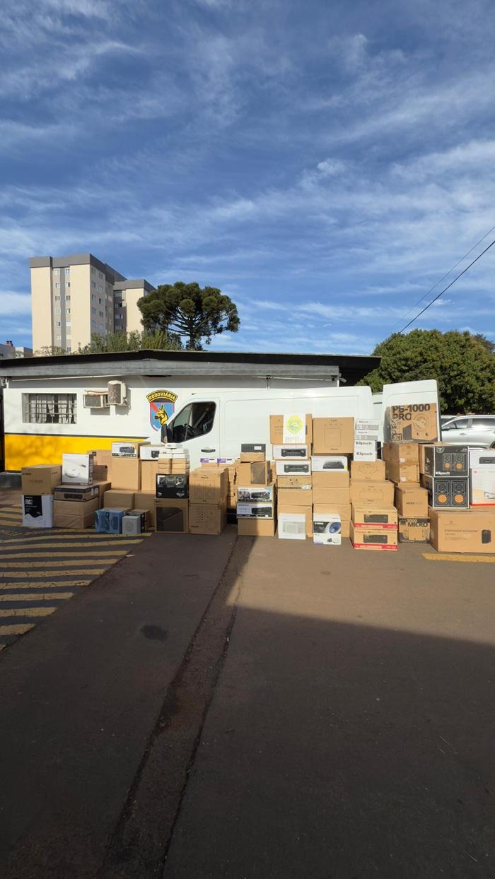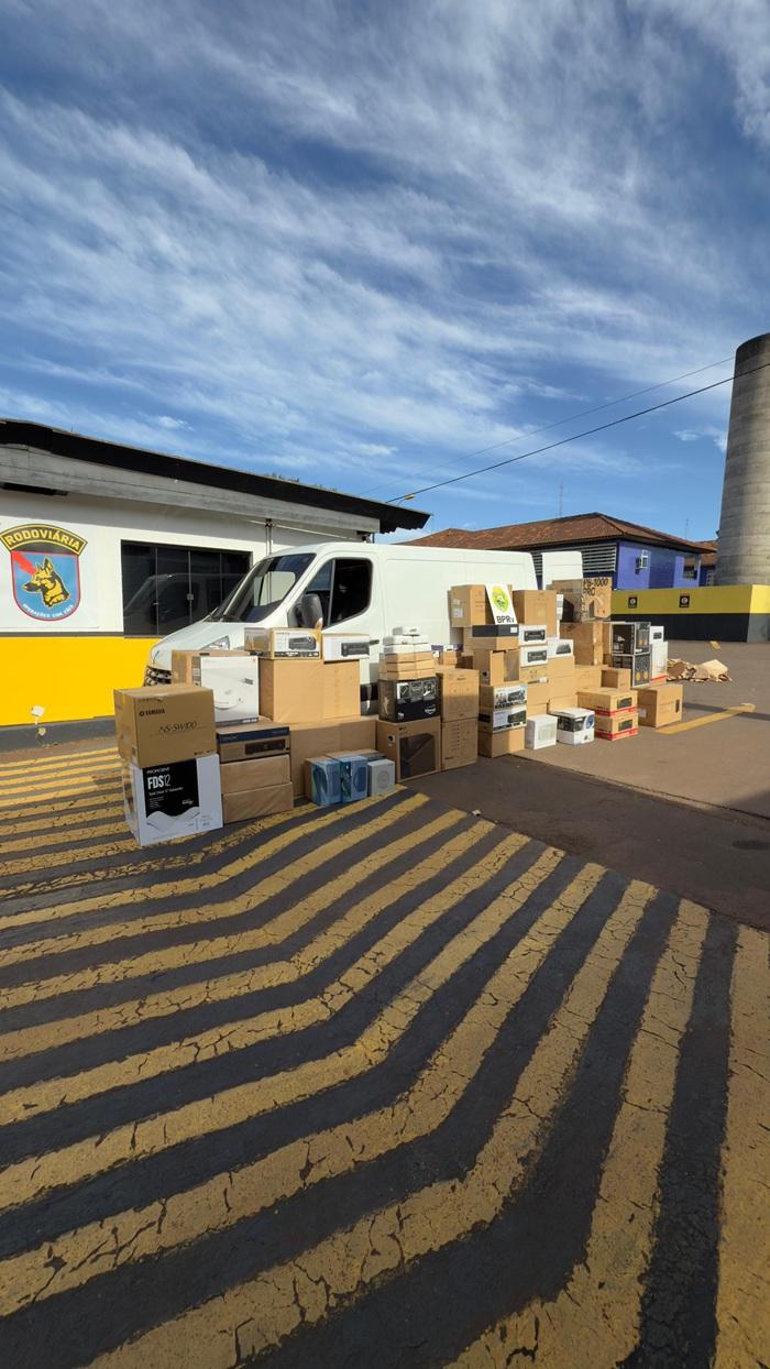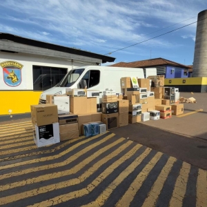 Durante abordagens de rotina no km 371 da PR-317, os policiais deram ordem de parada a uma van Renault/Master. Ao realizar buscas no interior do veículo, foram encontradas diversas caixas de eletrônicos sem a devida nota fiscal.