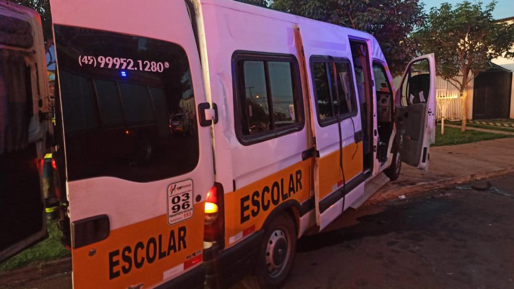 Van escolar se envolve em acidente no Jardim Pancera, em Toledo