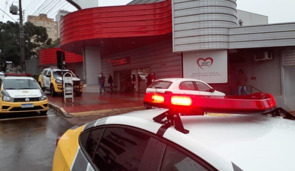 Várias viaturas policiais foram mobilizadas na manhã desta terça-feira ao Hospital Nossa Senhora da Salete, que fica no Centro de Cascavel.