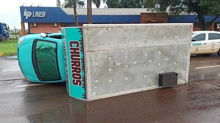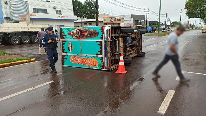 Nossa reportagem teve acesso a informações relatando que o acidente aconteceu quando a picape adaptada para vendas de churros trafegava pela Avenida e a porta do lado direito atingiu a cabine do caminhão rasgando-a, em seguida a picape tombou de lado interditando uma das pistas.