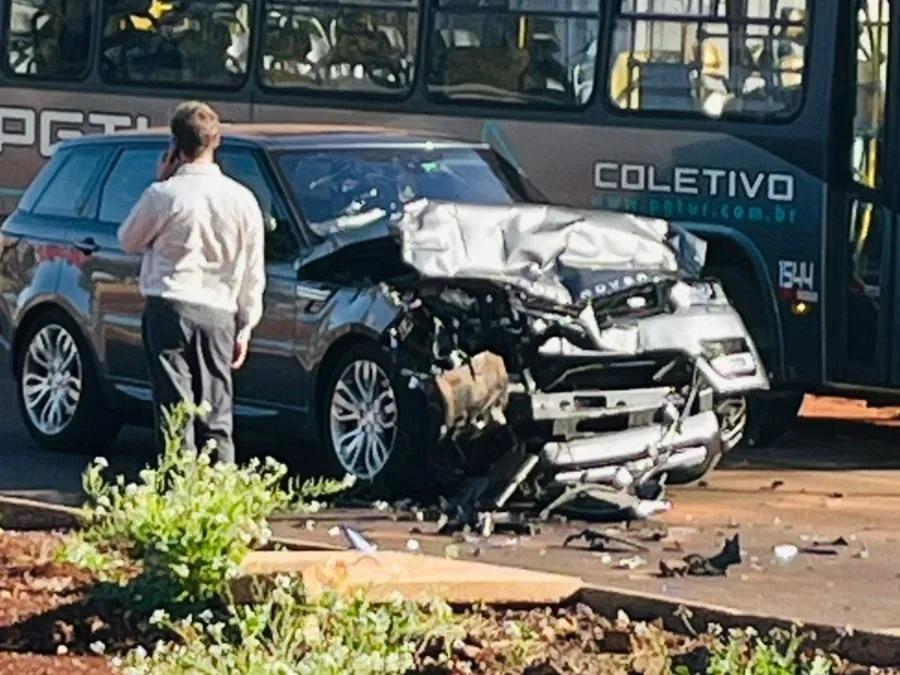 Um veículo teve sua frente totalmente destruída em um acidente de trânsito ocorrido em Palotina ainda na quarta-feira (24), na Avenida Presidente Kennedy, saída para Francisco Alves.
