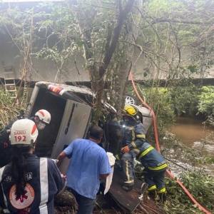 Veiculo cai da ponte entre Palotina e Terra Roxa e casal consegue socorro 4 horas depois