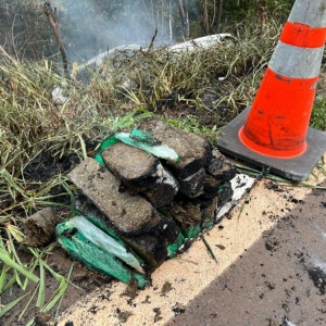 Os policiais, ao chegarem ao local, constataram que o carro estava carregado com diversos tabletes de maconha, onde boa parte da carga acabou sendo destruída pelo fogo e outra parte foi retirada. O condutor acabou se evadindo do local após o acidente.