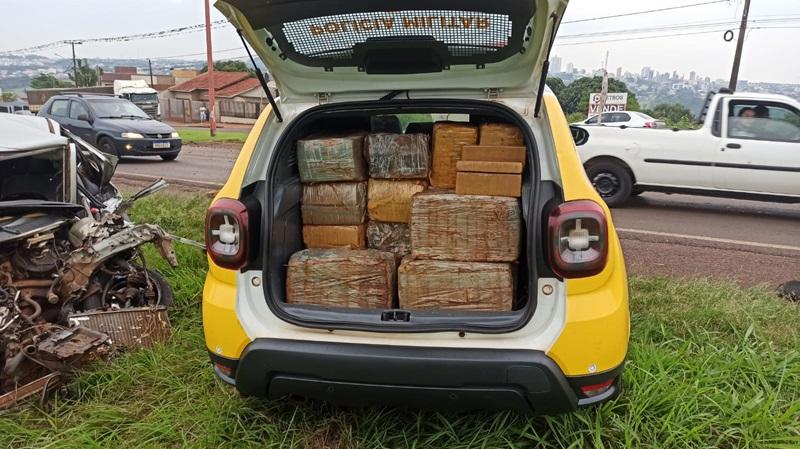 Em seguida saiu da pista e capotou parando na posição normal, logo que o acidente aconteceu populares ligaram para os bombeiros e em seguida para a Polícia Militar relatando que tinha fardos de maconha dentro do Peugeot, a droga ficou espalhada pela pista.