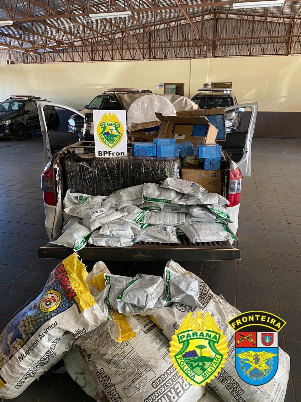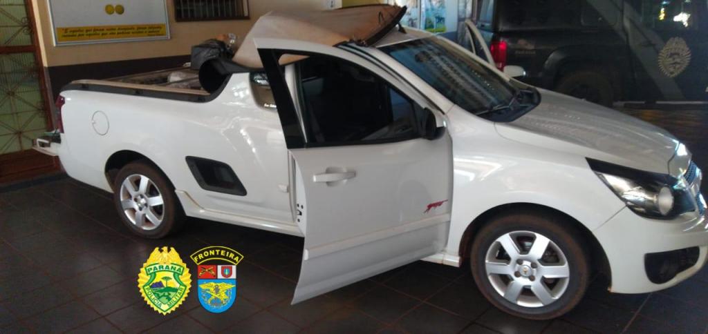 Ontem (22), em ação da Operação Hórus, Policiais Militares do BPFron - Batalhão de Polícia de Fronteira durante patrulhamento na área rural de Guaíra, realizaram a apreensão de um veículo GM/Montana, , carregado com eletrônicos e agrotóxicos de origem estrangeira.