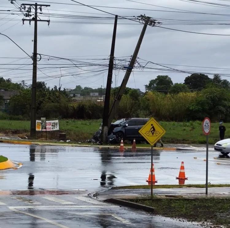 Um veículo colidiu violentamente na manhã dessa sexta-feira (11), contra um poste de energia na avenida Rio Grande do Sul próximo ao Supermercado Copagril na Vila Gaúcha em Marechal Cândido Rondon.