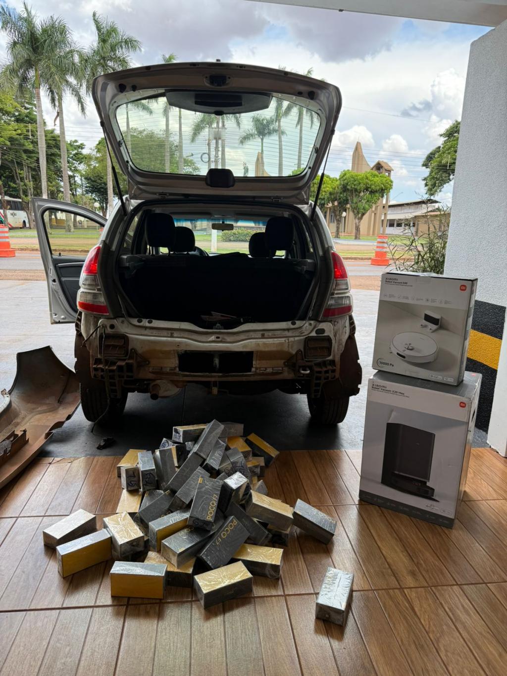 Ainda durante a verificação, no porta-malas do veículo também foram localizados dois robôs aspiradores da marca Xiaomi, sendo um modelo Robot Vacuum X20 Max e um modelo Robot Vacuum S40.