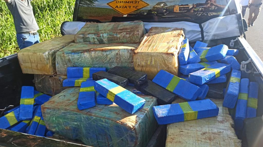 Ao verificar o que tinha nos veículos os policiais se depararam com carregamento de maconha, os dois homens foram presos por tráfico de droga que somou aproximadamente 1.200 kg de maconha.