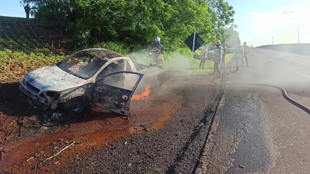 O corpo de bombeiro foi acionado com uma ambulância e um caminhão de combate a incêndio para o local enquanto o socorrista da ambulância atendia o motorista do Ford a outra guarnição apagava o fogo da Montana que ficou totalmente destruída.