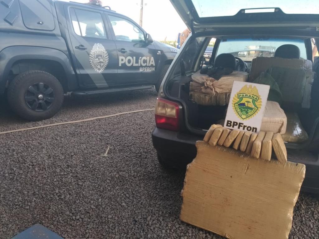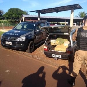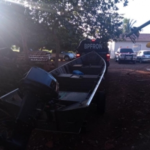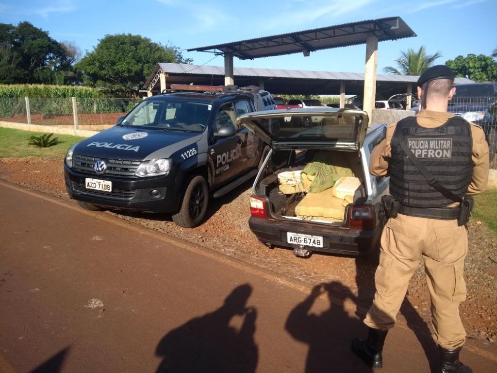 Chegando ao local, Policiais Militares do BPFron depararam-se com uma pessoa e um veículo Fiat Uno, placa de Marechal Cândido Rondon, carregado com fardos de maconha, totalizando 216,6kg , o suspeito também havia acabado de retirar, do lago Itaipu, e guardar um barco.