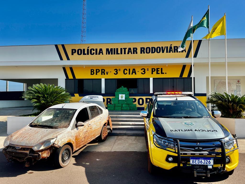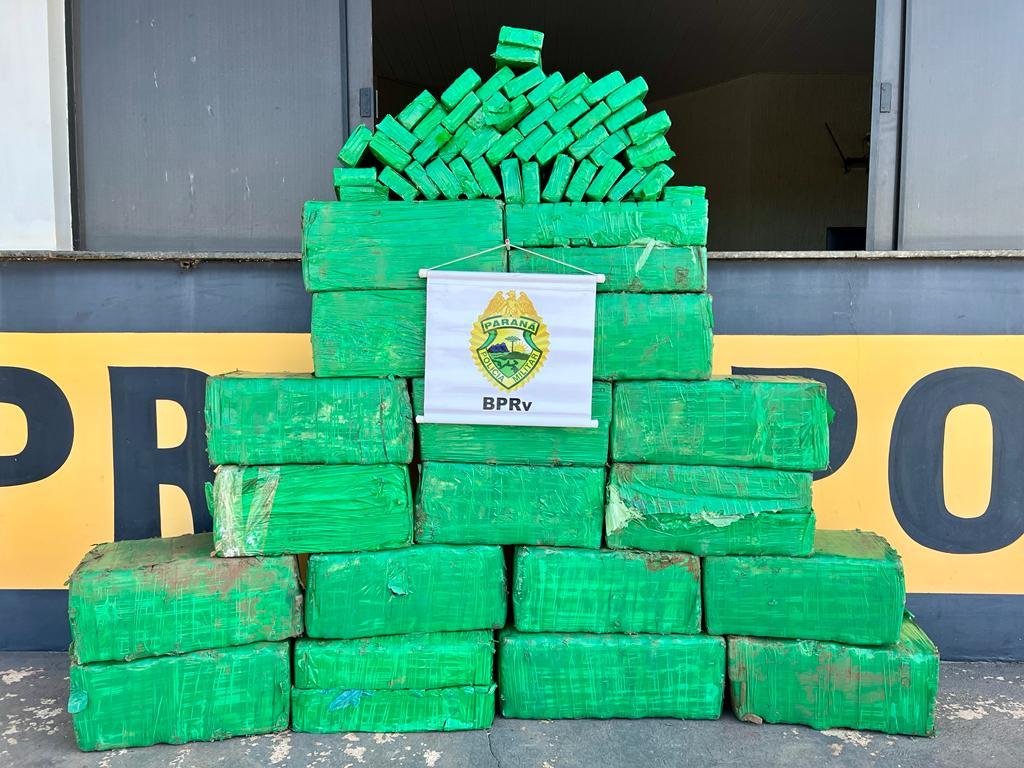 Ao verificar o veículo com placas de Colombo/PR, foi constatado que estava carregado de maconha, que foi levado até o PRv de Iporã para confecção do Boletim de Ocorrência e pesagem da droga que totalizaram 481 (quatrocentos e oitenta e um) tabletes pesando 490,300 (quatrocentos e noventa quilos e trezentas gramas) e posterior entrega na DP de Iporã.