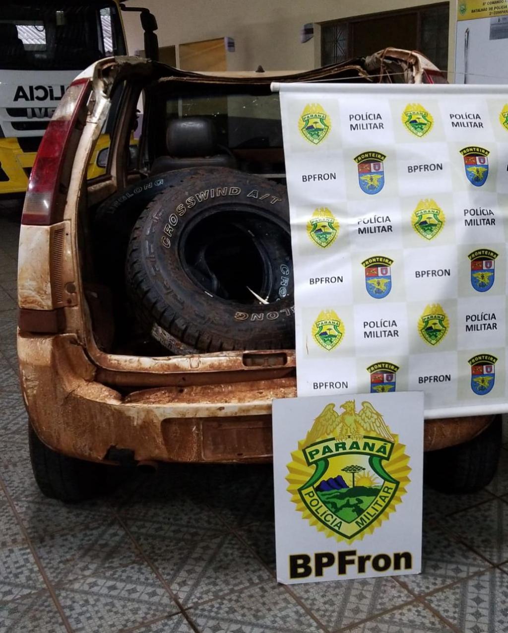 Neste sábado (02), policiais militares do BPFron - Batalhão de Polícia de Fronteira, realizavam patrulhamento no distrito de Oliveira Castro em Guaíra quando avistaram um veículo Meriva de cor branco carregado com contrabando nas proximidades de uma residência.