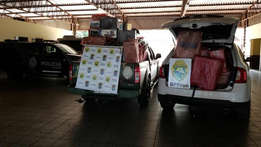 Neste momento foi possível observar pelos policiais militares ilícitos na residência. Foram localizadas 50 caixas de cigarros oriundas do Paraguai, 03 volumes de aparelhos eletrônicos além de 18 gramas de maconha. Diante dos fatos o veículo foi apreendido e encaminhado, juntamente das duas mulheres das residências aos procedimentos legais cabíveis.