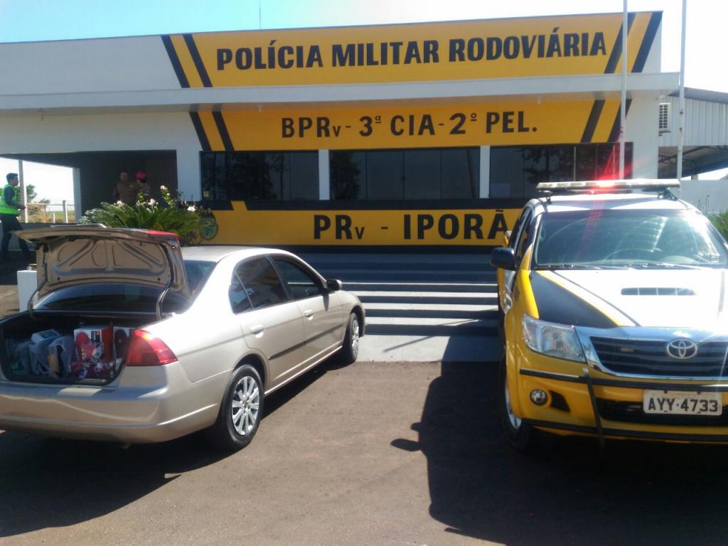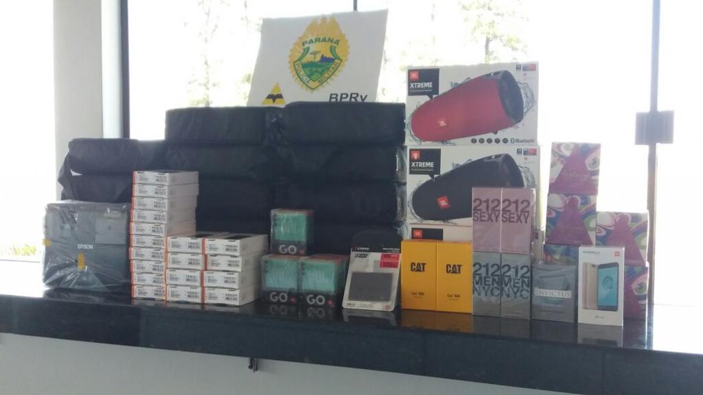 Por volta das 12h30 de hoje (25), durante Operação de Fiscalização na PR-323, a equipe de serviço da PRE de Iporã abordou o veículo Honda/Civic de cor dourada com placas de Guaíra, ao realizar abordagem ao veículo foram localizados no interior do seu porta malas, projetores multimídia, equipamentos de informática, eletrônicos e perfumes.