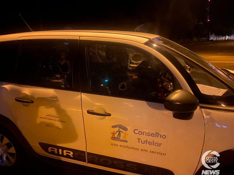 A ação foi provocada por uma mulher em surto. O veículo Citroen Aircross é de uso exclusivo do Conselho Tutelar e estava estacionado em frente a Câmara de Vereadores.