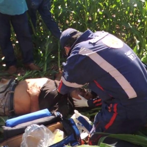 Antônio Bezerra de 61 anos foi socorrido pelas equipes do SAMU e Defesa Civil de Assis Chateaubriand por volta das 10h00 desta segunda-feira (23), após o mesmo sofrer um mal súbito. De acordo com as primeiras informações, o homem trafegava com a VW Saveiro, placas de Assis, quando em determinado momento ao passar mal, o veiculo saiu da pista e entrou em uma plantação de milho. Na sequência o carro começou a ter um princípio de incêndio e o mesmo saiu a tempo. Após a chagada do socorro o homem foi levado às pressas para ao Hospital Beneficente, onde já se encontra bem. Já o veículo foi destruído pelo fogo. Policiais militares de Assis auxiliaram até a chegada da Polícia Rodoviária Estadual no local do acidente.