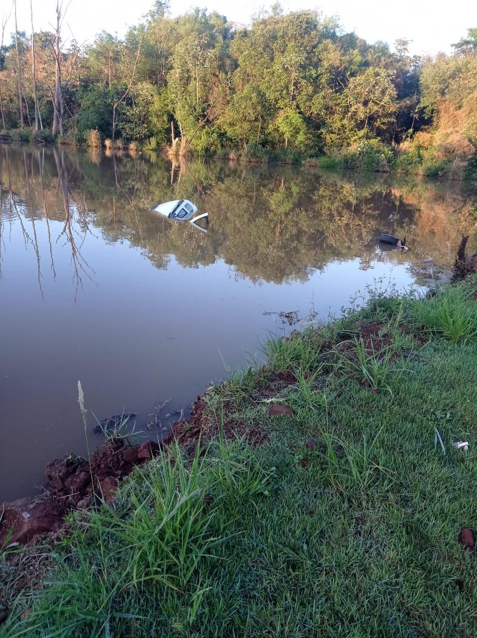 Um veículo foi localizado dentro de um açude nas margens da rodovia municipal que liga Maripá a Assis Chateaubriand.