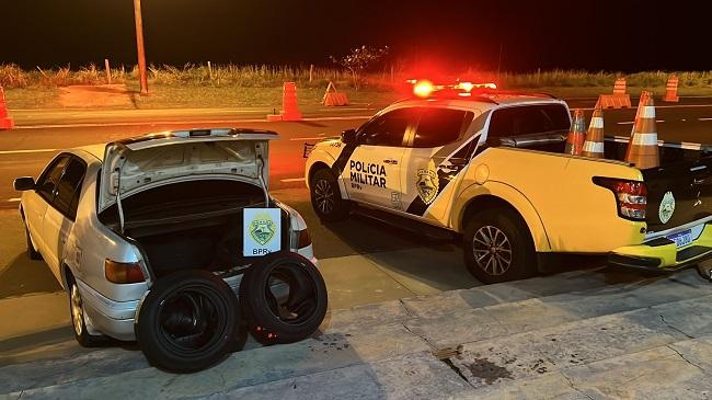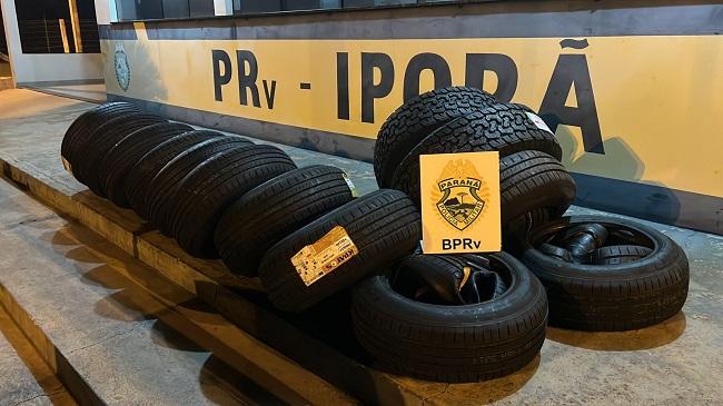 Foi apreendido 61 pneus contrabandeados na noite desta terça-feira em Iporã, região de Umuarama, a Polícia Rodoviária Estadual abordou um veículo Toyota Corona com placas paraguaias na rodovia PR 323.
