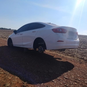 Os policiais foram até o local e verificaram que o GM/Cruze estava abandonado sem as rodas. O veículo também estava sem os bancos e forração interna, caracterizando que o mesmo era utilizado para o transporte de ilícito.