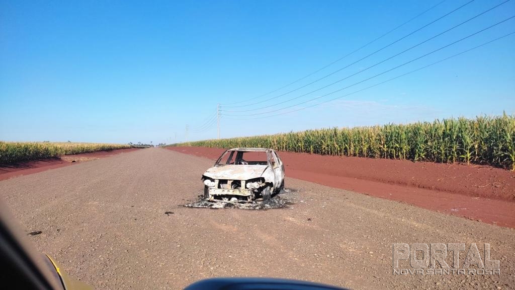 A Polícia Militar recebeu a informação de populares de que havia um veículo queimado no interior de Palotina, na Linha Botafogo, proximidades do clube da comunidade.