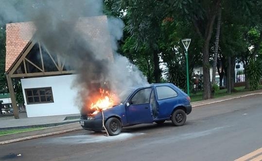 Com o fogo controlado, o proprietário disse que seguia pela Rua Paraná, sentido centro - bairro, quando o fogo começou na parte frontal do carro.