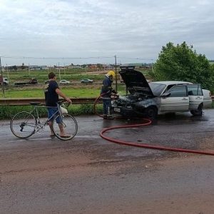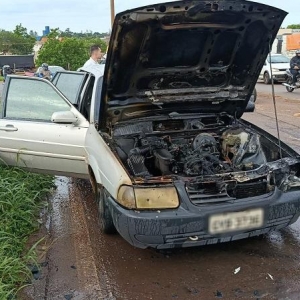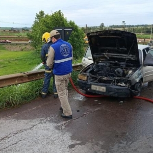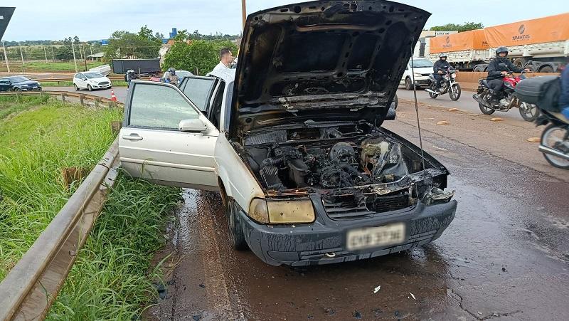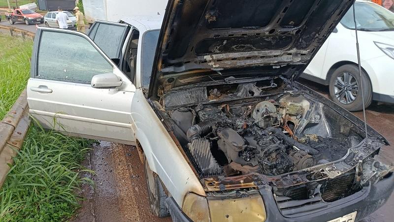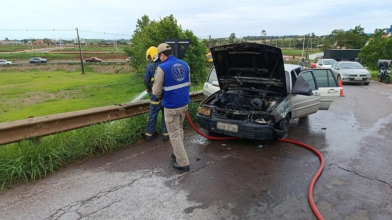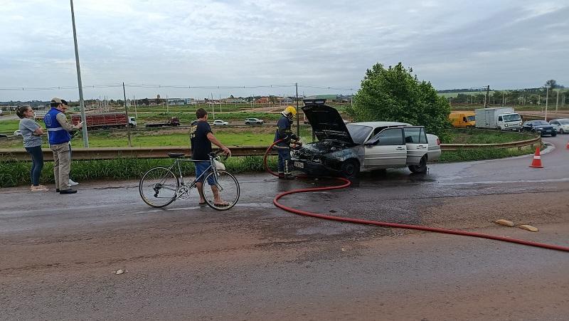 O carro envolvido foi um Volkswagen Santana, com placas de Cascavel. Conforme informações apuradas no local pela reportagem do Portal Nova Santa Rosa, o veículo seguia pela alça de acesso ao viaduto quando o motorista percebeu fumaça saindo da parte frontal.